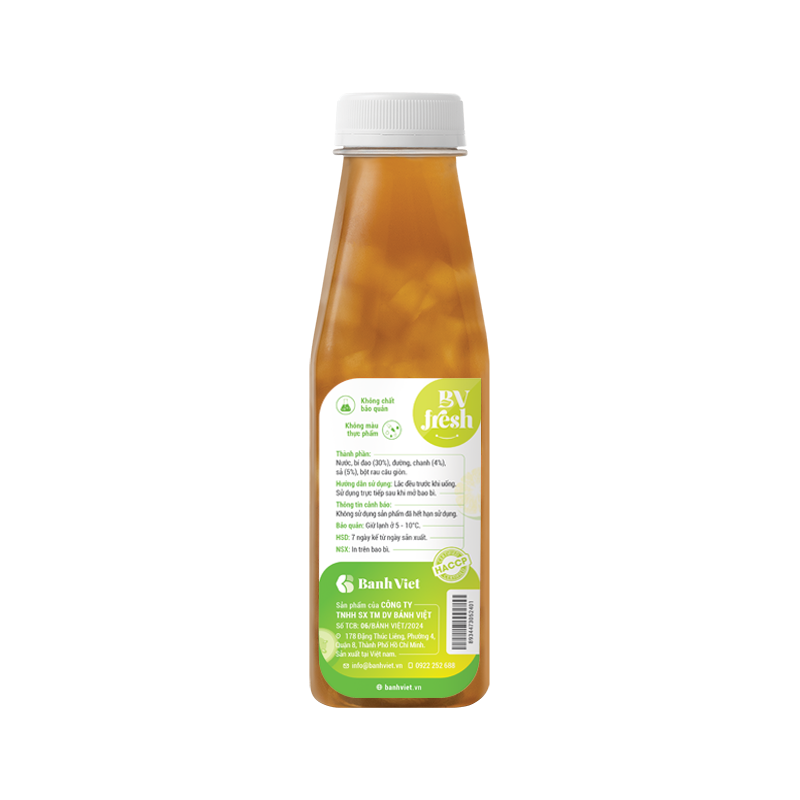 Thành phần: Nước, bí đao, đường, sả, chanh, bột rau câu giòn.